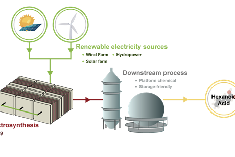 Biotechnologen van de TU Delft hebben een adsorptie/desorptie proces geïntegreerd met microbiële elektrosynthese voor de selectieve winning van capronzuur. In Chemical Engineering Journal laten ze zien hoe dit de inzet van hernieuwbare elektriciteit voor koolstofneutrale productie mogelijk maakt.