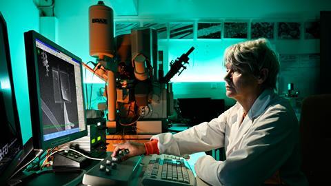 Electron microscopy mainly comes in two flavours: (1) detecting electrons that are emitted or reflected off the sample’s surface: scanning electron microscopy (SEM), or (2) measuring electrons that have passed through the sample: transmission electron microscopy (TEM). CMEM offers both techniques, with three SEMs and two TEMs. Friedrich: ‘We are a materials science lab that is also specialized in studying samples in their synthesis liquid, like water or organic solvent mixtures. Very few labs in the world do this.’