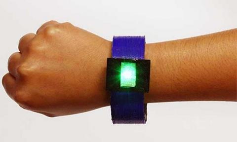 Jammer is wel dat de accu in hun 3D-geprinte armbandje met LED-verlichting na één minuut al leeg is. Maar het gaat om het principe.
